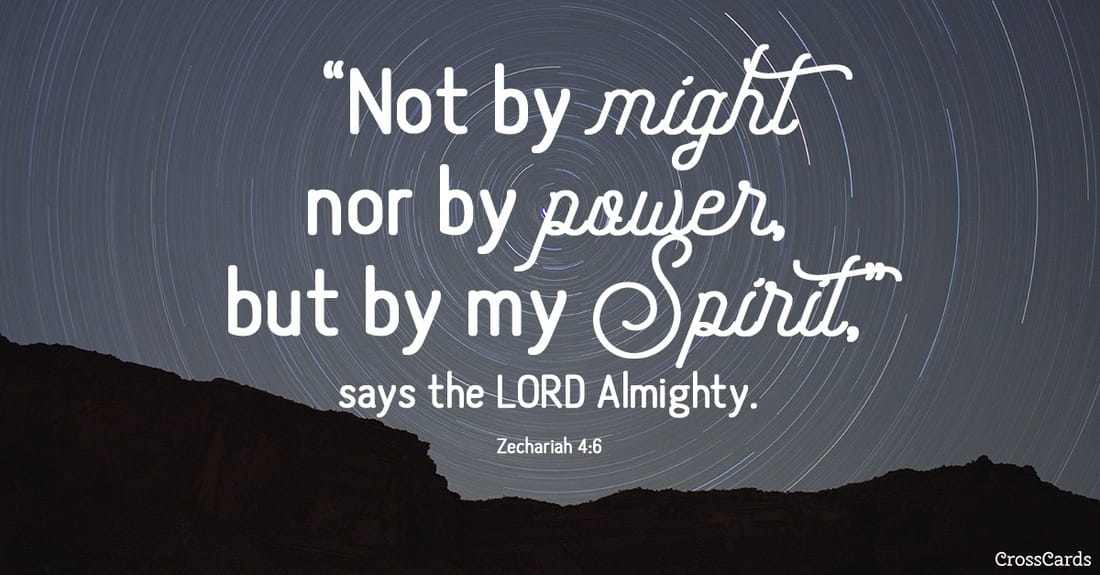 Zechariah 4:6 states “Then he answered and spake unto me, saying, This is the word of the Lord unto Zerubbabel, saying, Not by might, nor by power, but by my spirit, saith the Lord of hosts.” An angel was explaining to Zechariah the continuous work of God’s Spirit, moving and producing works or results in and through us that are in fact eternal and gives evidence to the world of “whose” we are-God’s beloved children- yes my friends, we are more than conquerors before such a formidable foe! “Nay, in all these things we are more than conquerors through him that loved us” Romans 8:37.