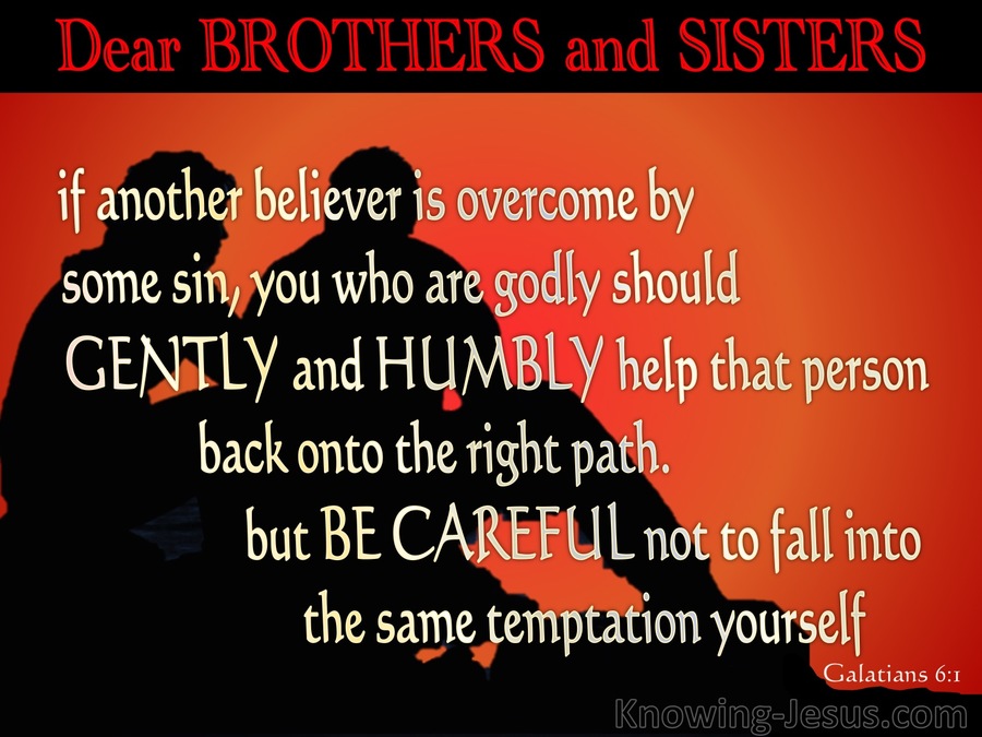 “Brethren, if a man be overtaken in a fault, ye which are spiritual, restore such an one in the spirit of meekness; considering thyself, lest thou also be tempted.” Galatians 6:1