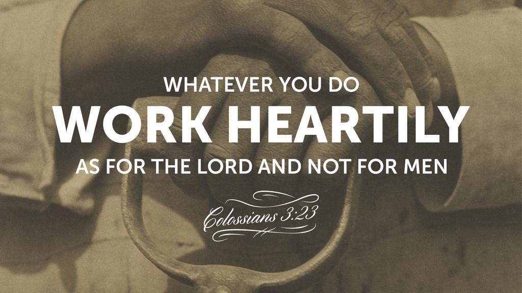 “And whatsoever ye do, do it heartily, as to the Lord, and not unto men; Knowing that of the Lord ye shall receive the reward of the inheritance: for ye serve the Lord Christ.” Colossians 3:23.
